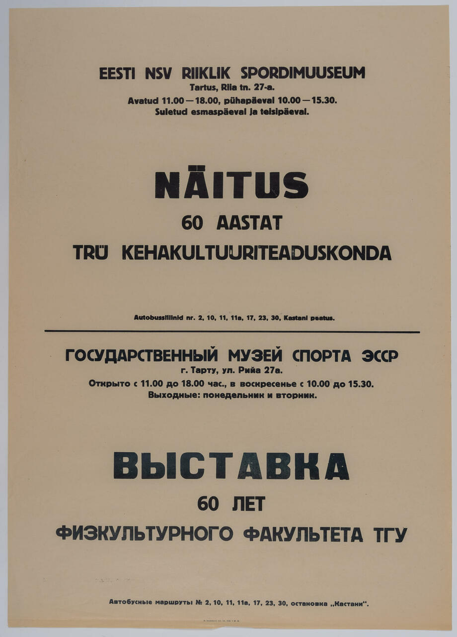 Ajalooline spordiplakat: näitus "60 aastat TRÜ kehakultuuriteaduskonda"
