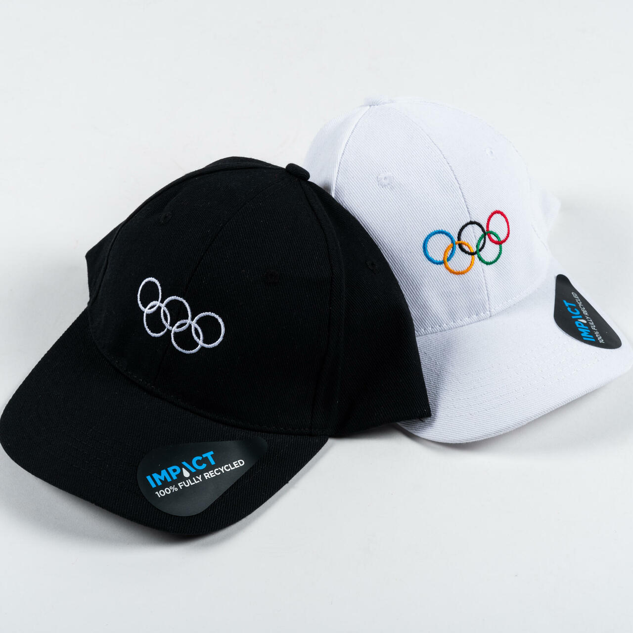 Ametlikku olümpiakollektsiooni kuuluv olümpiarõngastega valge nokamüts.