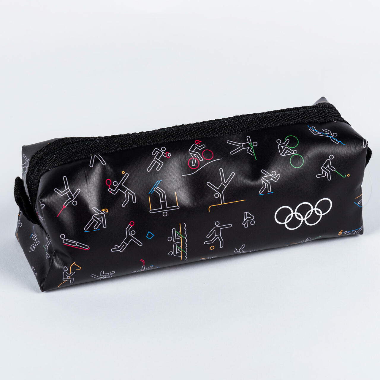 Ametlikku olümpiakollektsiooni kuuluv olümpiarõngaste ja spordialade piktogrammidega pinal.