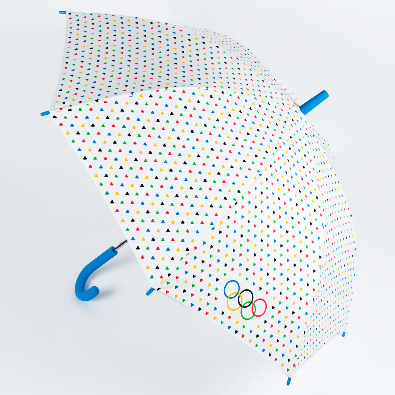 Ametlikku olümpiakollektsiooni kuuluv olümpiavärvides südamete ja olümpiarõngastega suur vihmavari.